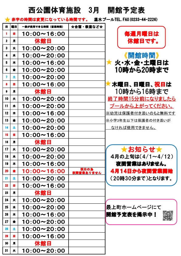 ご不明な点等ございましたら、温水プール事務室までお問い合わせください。